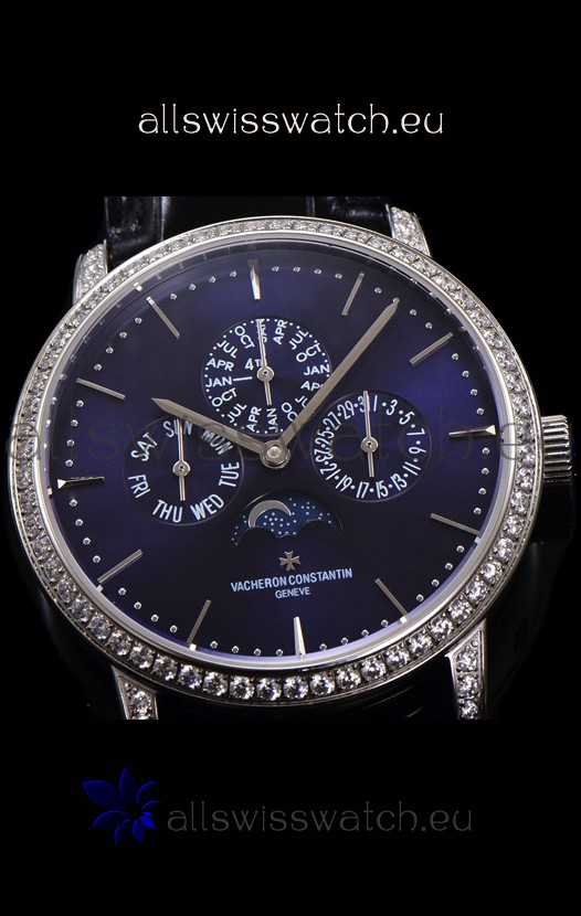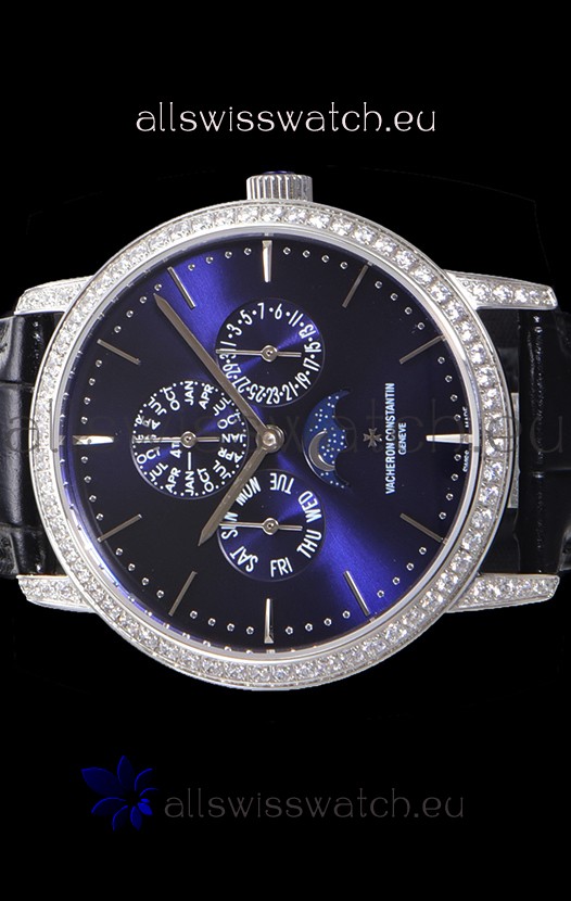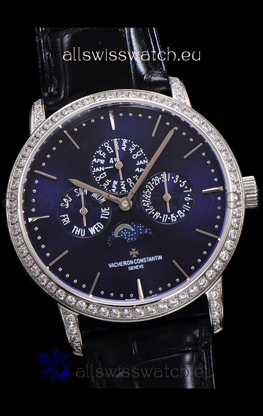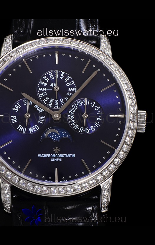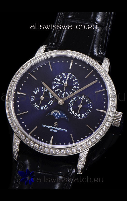 Vacheron Constantin Patrimony Perpetual Calendar Ultra-Thin White Gold Blue Dial Swiss Replica
