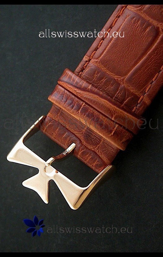 Strap: Genuine Brown Leather Strap with Vacheron Constantin Markings and Engravings Exactly like the Authentics