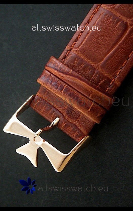 Strap: Genuine Brown Leather Strap with Vacheron Constantin Markings and Engravings Exactly like the Authentics