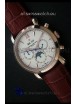 Function: Rose Gold Stick/Roman Hour Markers, Minute, Second, Functional Sub Dial for Day of the Week Display, Month and Year Display at 12:00