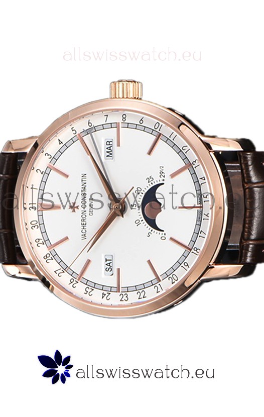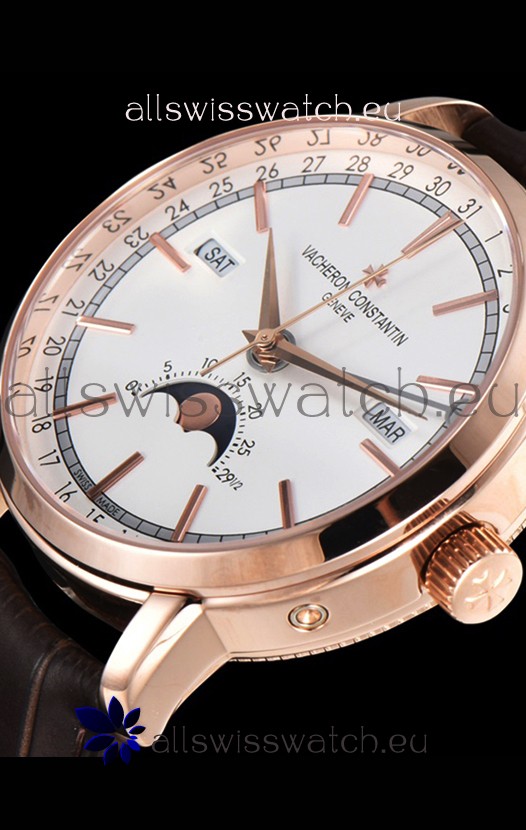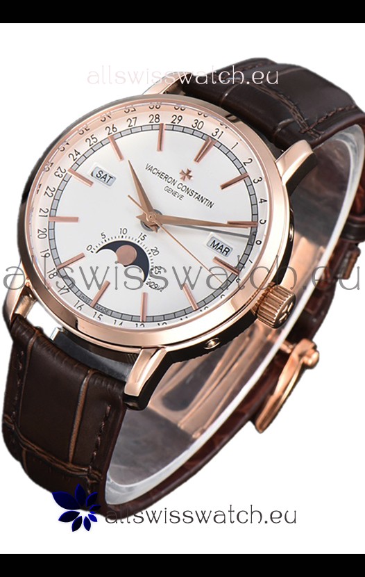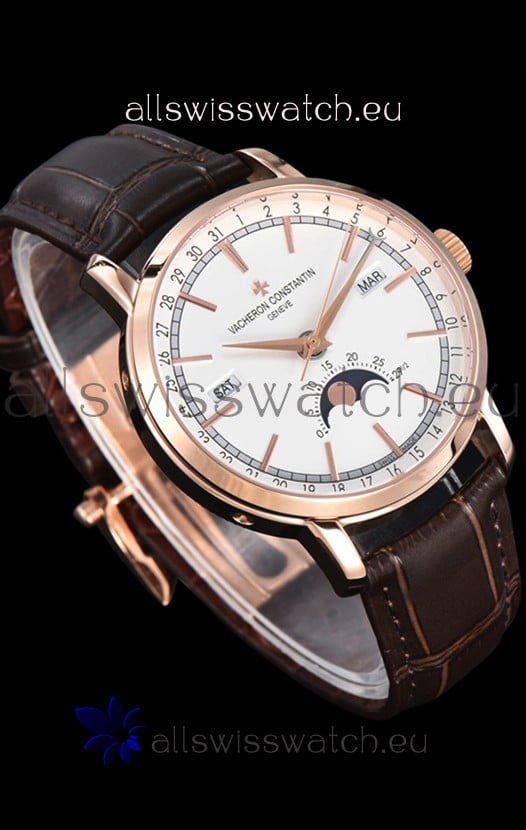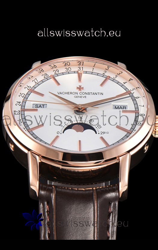 Vacheron Constantin Traditionelle Complete Calendar Rose Gold Plating White Dial Swiss Replica
