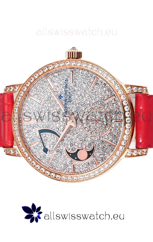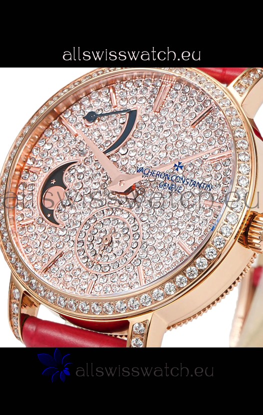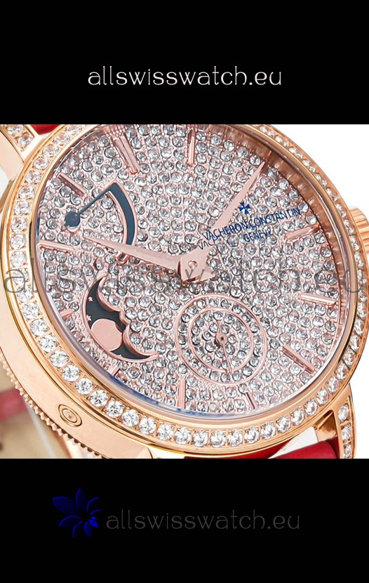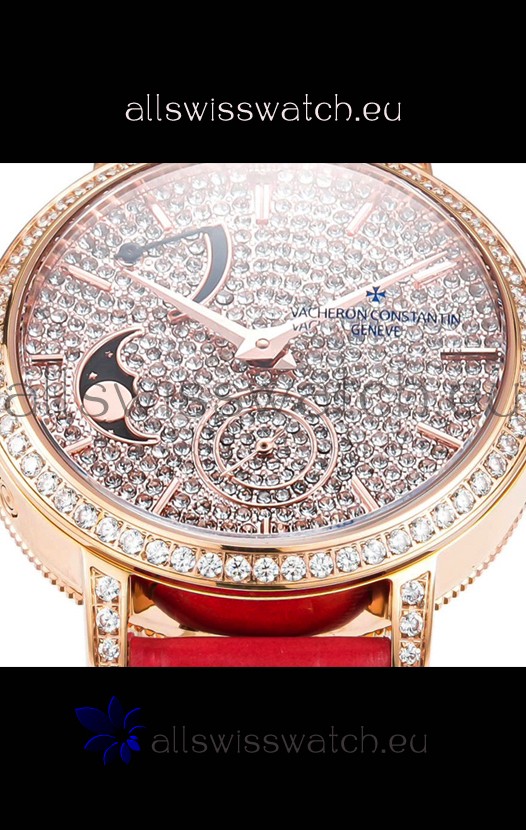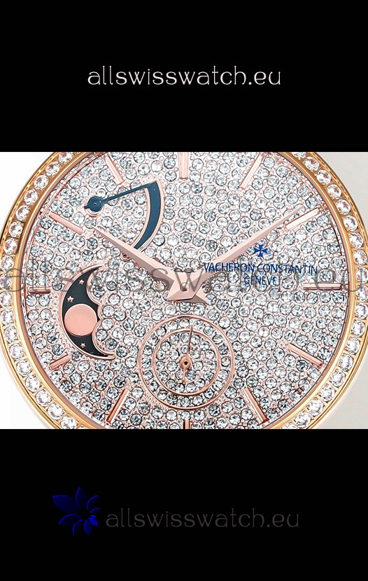 Vacheron Constantin Traditionelle Moon Phase Diamond Paved Dial in Rose Gold Swiss Replica