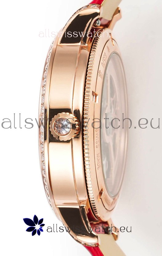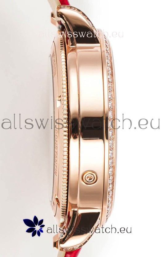 18K Rose Gold Plating 904L Solid Stainless Steel Casing complete with Vacheron Constantin Markings and Engravings. High Quality Diamonds Bezel