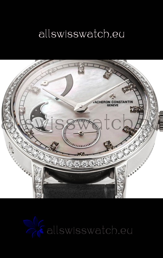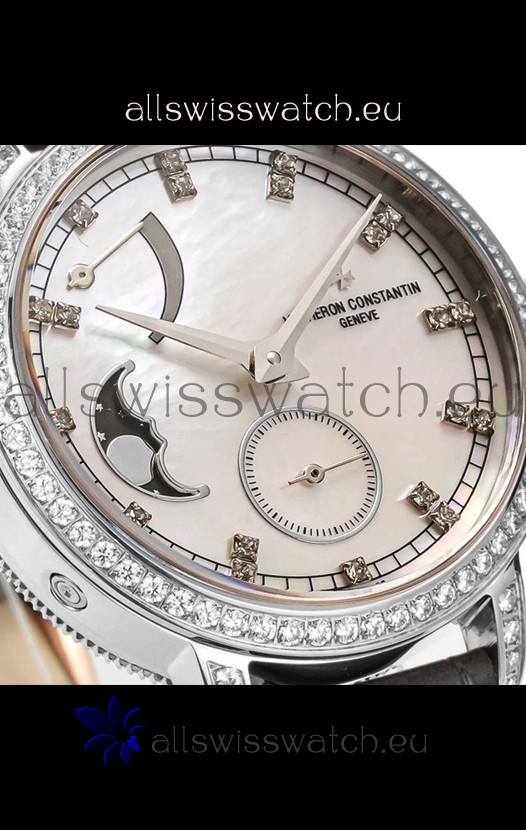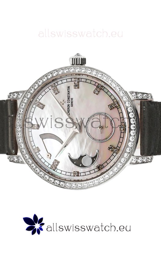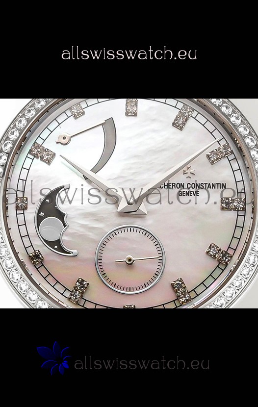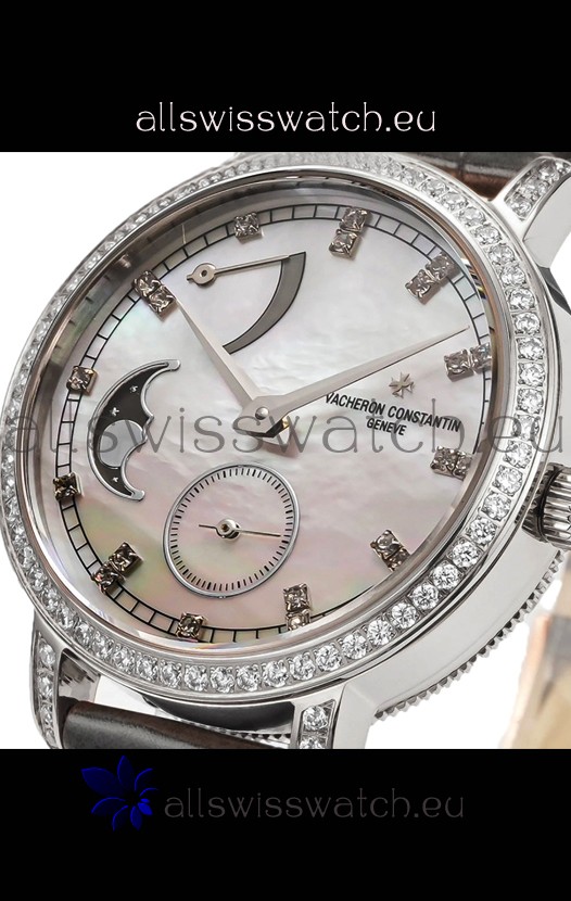 Vacheron Constantin Traditionelle Moon Phase Mother of Pearl Dial in Steel Case Swiss Replica