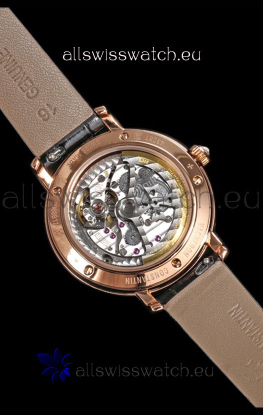 18K Rose Gold Plating on 904L Solid Stainless Steel Casing complete with Vacheron Constantin Markings and Engravings.
