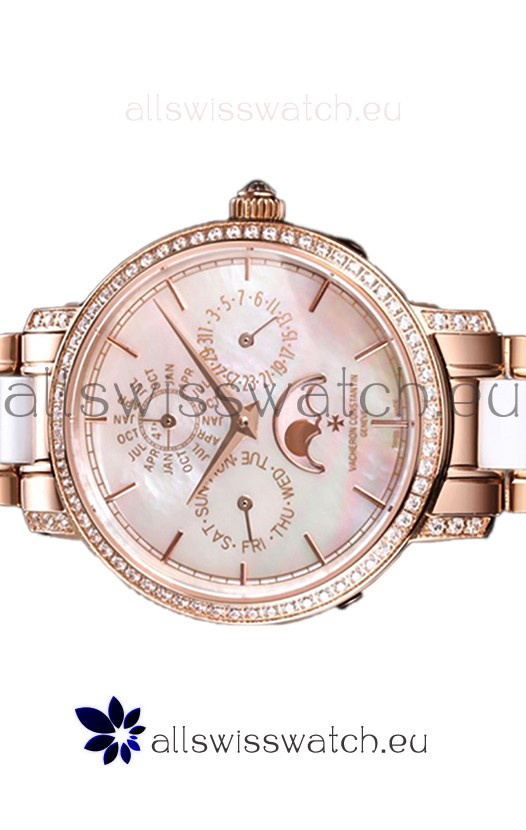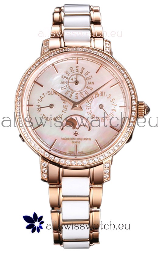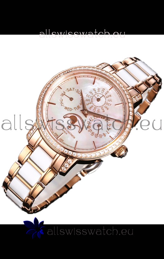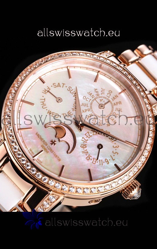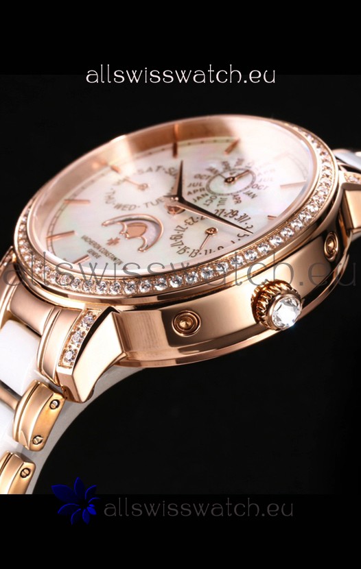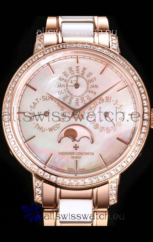 Rose Gold Plating on 904L Steel Strap with White Ceramic Inlays Links with Vacheron Constantin Fold Buckle complete with all Markings and Engravingas as per the orignals