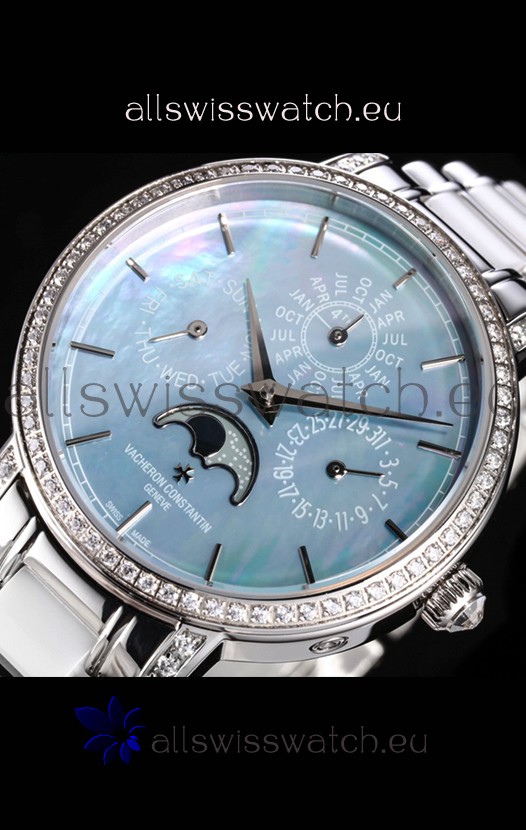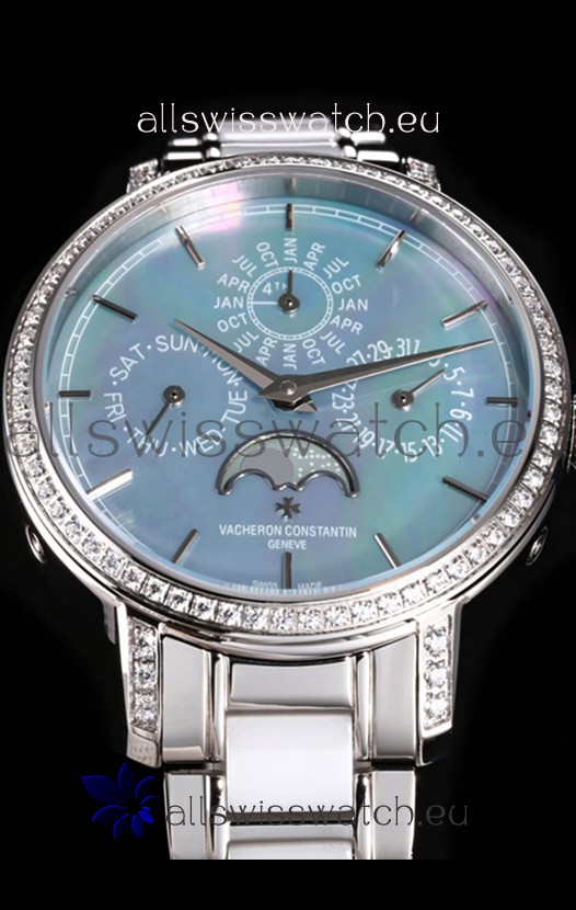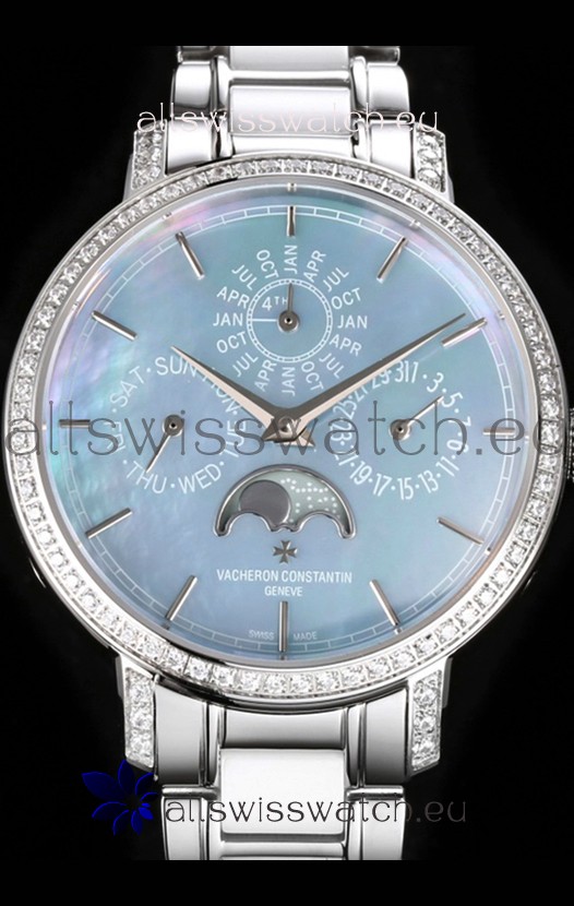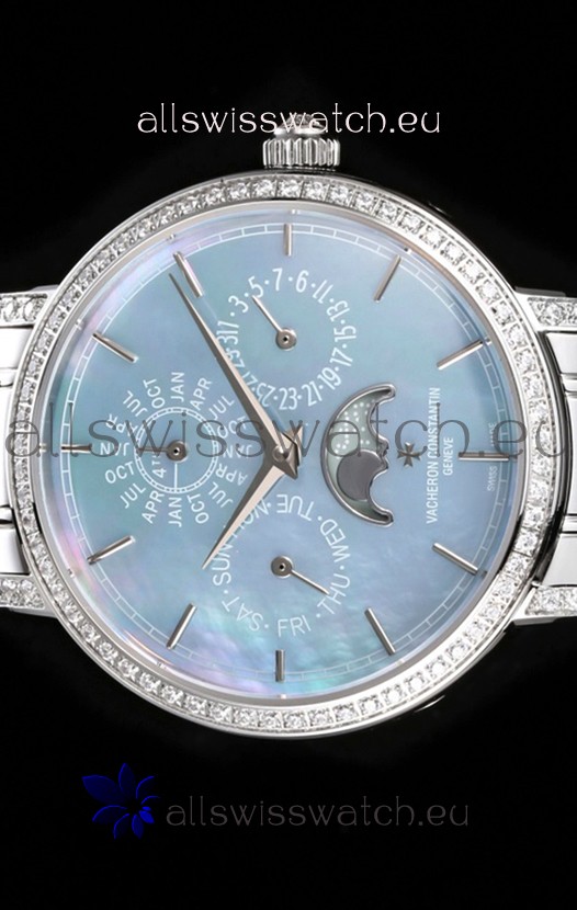 Vacheron Constantin Traditionelle Perpetual Calendar Ultra-Thin Steel Blue Pearl Swiss Replica