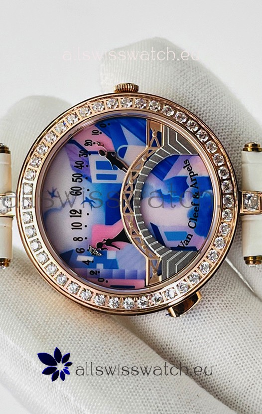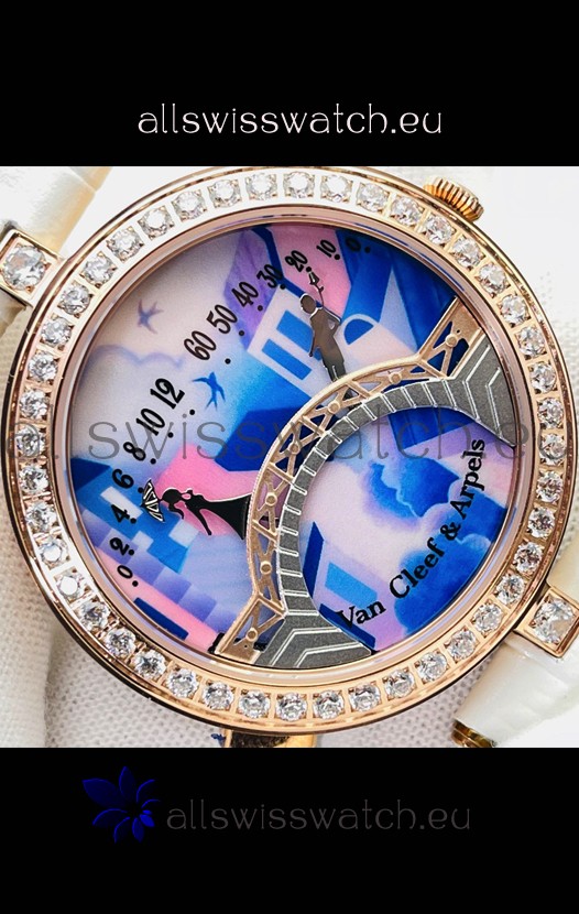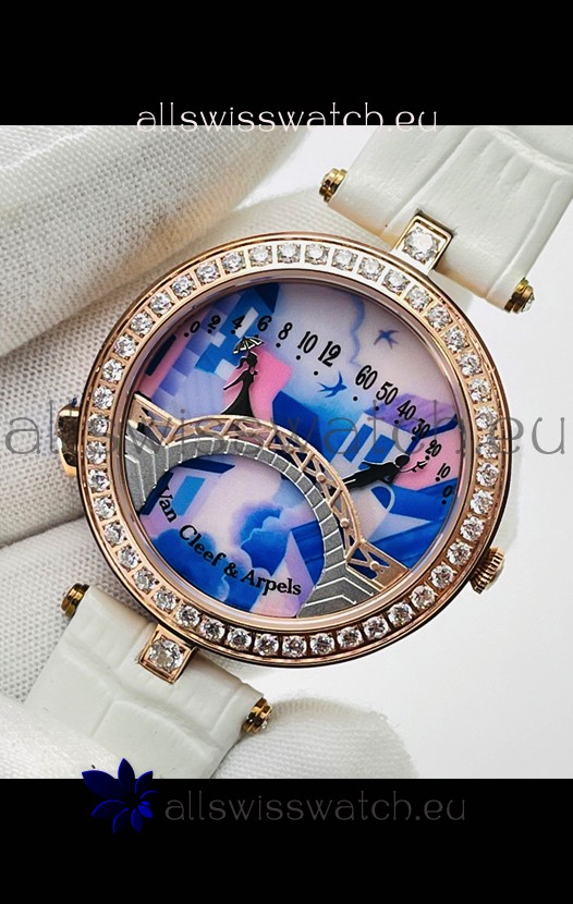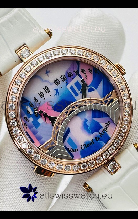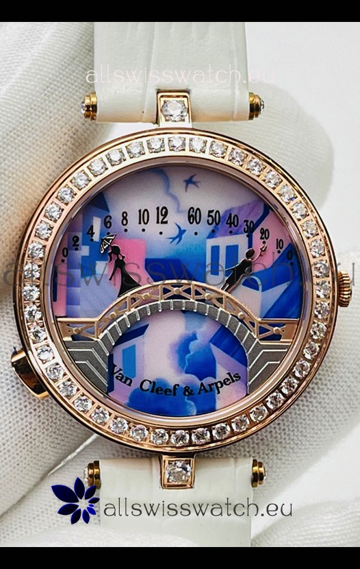 Van Cleef & Arpels Lady Arpels Pont des Amoureux in Rose Gold White Strap