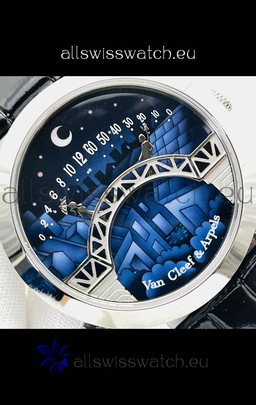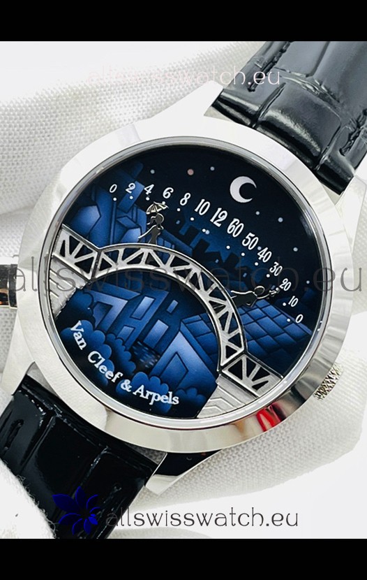 Van Cleef & Arpels Lady Arpels Pont des Amoureux Watch in Stainless Steel Black Strap