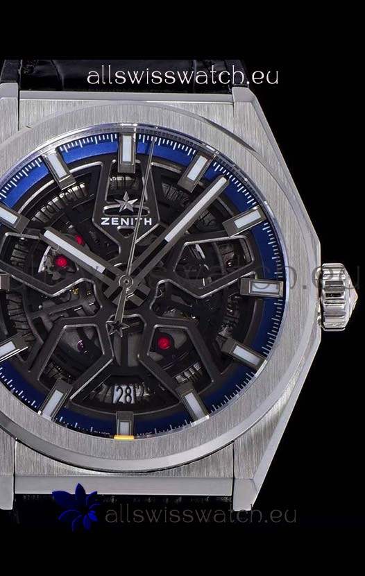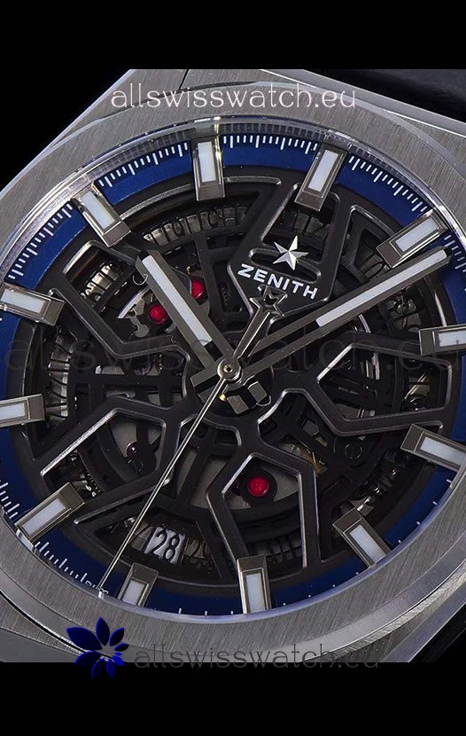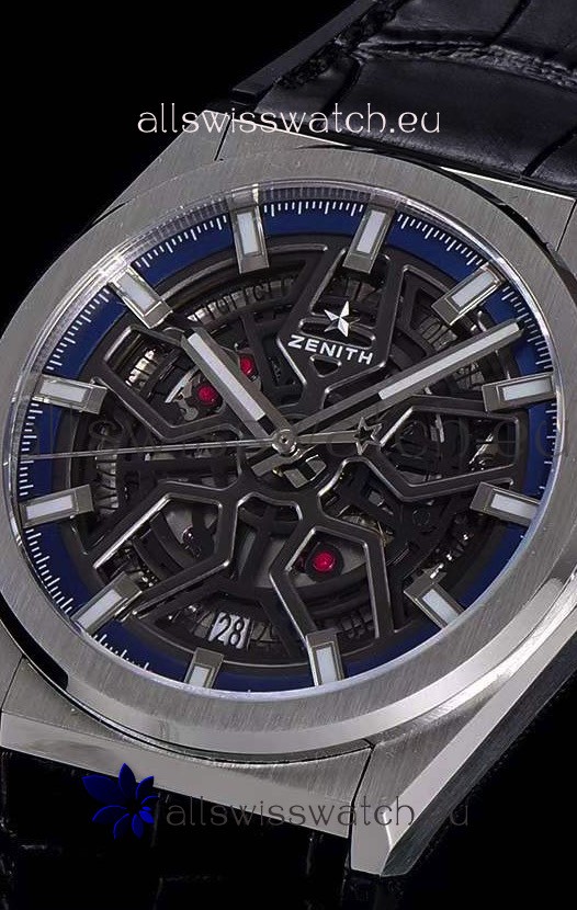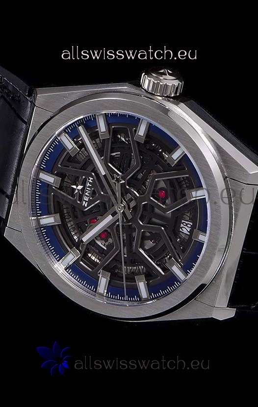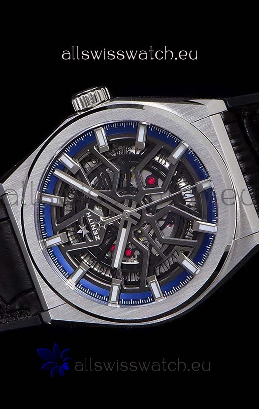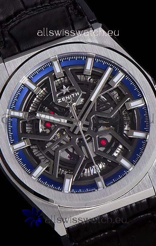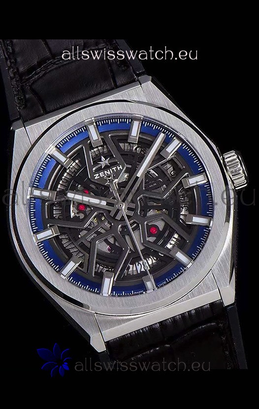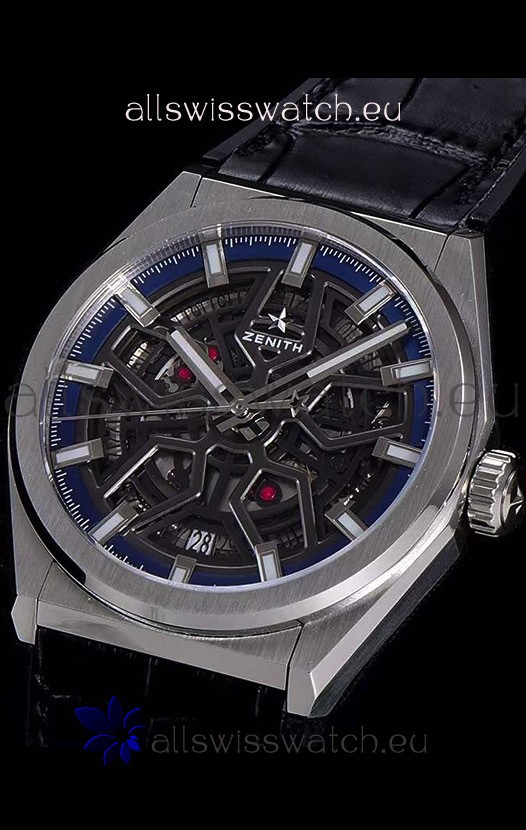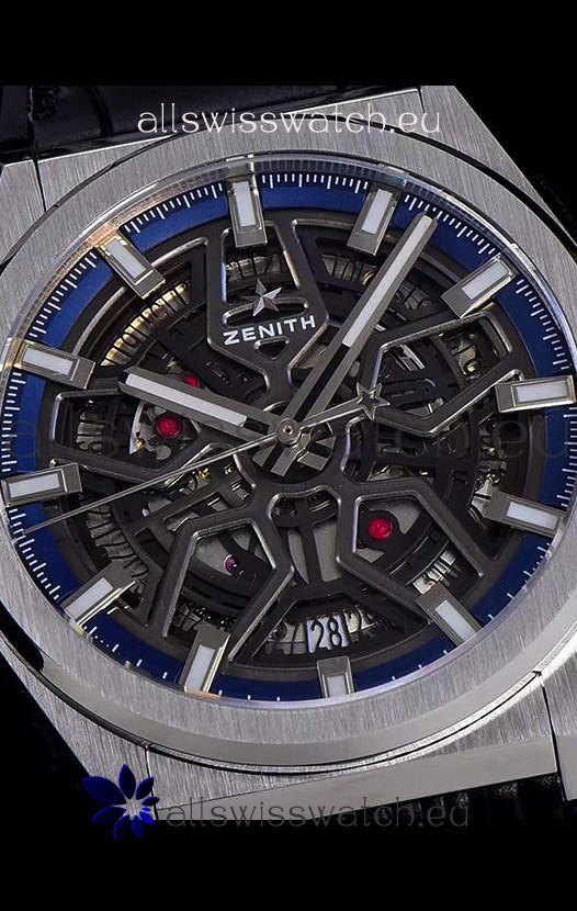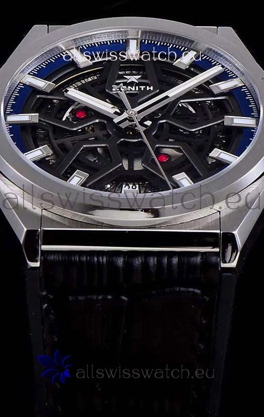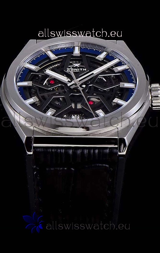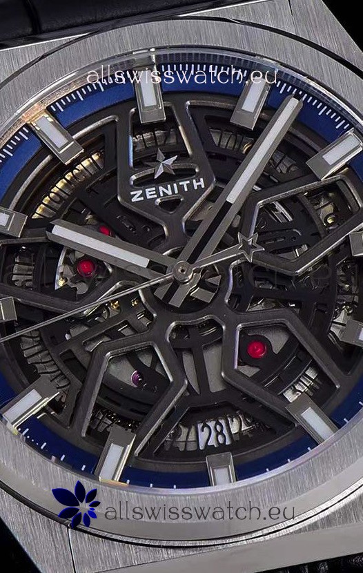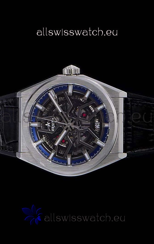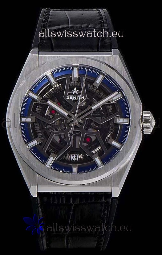 You're reviewing: Zenith Defy Classic Skeleton 41 mm Titanium Men's Swiss Replica Watch - Black Leather Strap