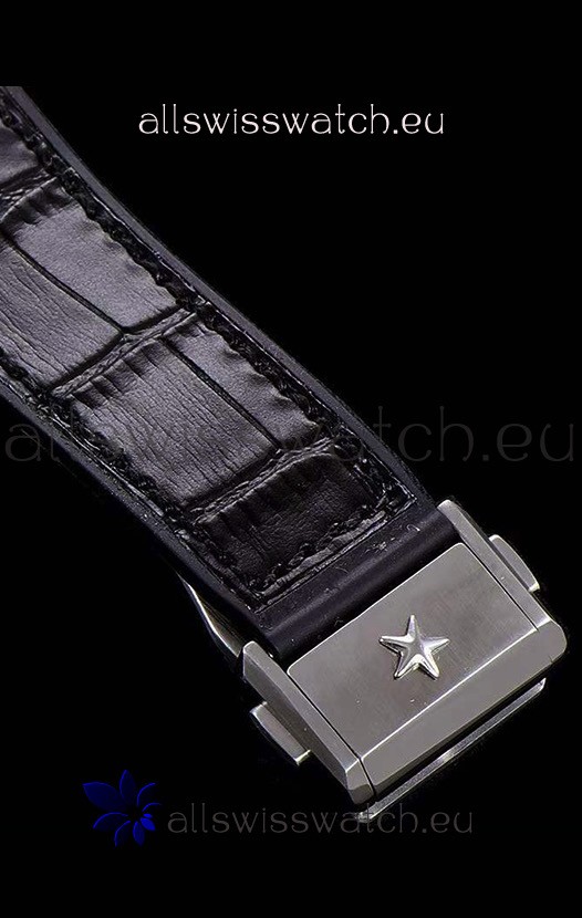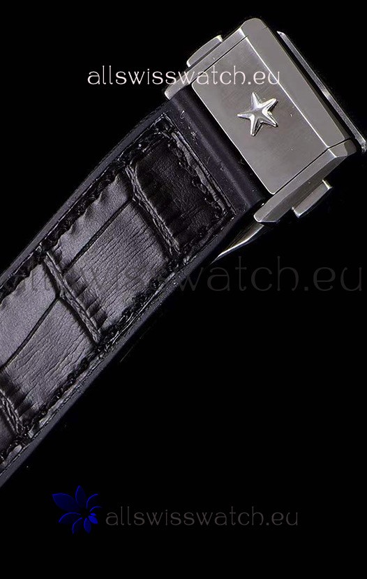 Genuine Black Leather Strap with Stainless Steel Clasps complete with Zenith Markings and Engravings as per the originals