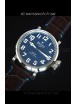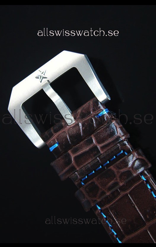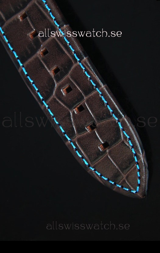 Genuine Assolutamente High Quality Leather Strap with Blue Stitches and Brushed Tang Buckle
